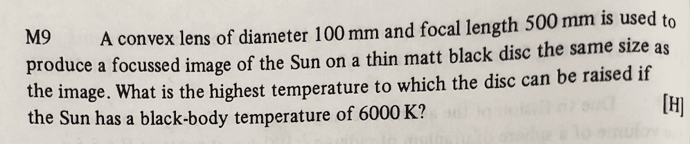 I know that the Sun is at a very far distance from the lens, so I assume the rays are parallel and the image is formed at the focus (500mm away from the centre of the lens).