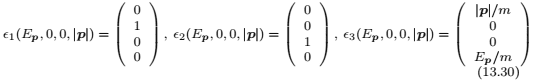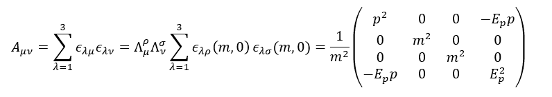 - I am trying to understand example 13.6 given in the book 'Quantum Field Theory for the Gifted Amateur' by Lancaster and Blundell. The problem is: Consider a massive photon in the rest frame so that P^μ=([m,0,0,0). If we boost the particle in the z direction to P^μ=([E,0,0,p) can we calculate the product of the polarisation vectors: