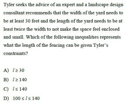 condition (1) ... $W \ge 30 \implies 2W \ge 60 \implies 200-L \ge 60 \implies L \le 140$