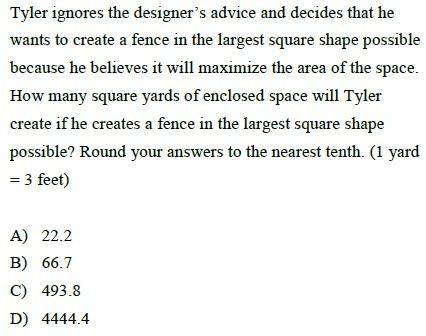 Square that dimension. Recall $9 \text{ ft}^2 = 1 \text{ yd}^2$
