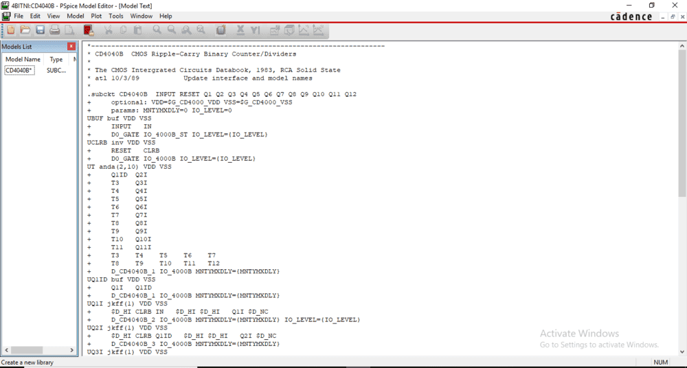 - There is a request for the complete model definition of the CD4040 to better understand its operation in the simulation.