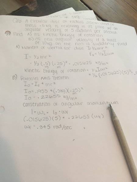 Participants note the challenge of determining the new center of mass due to the significant mass of the attached object compared to the disc. There is also mention of potential missing data that could affect the analysis.