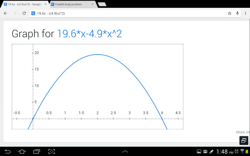b.) First I took the time to get to the max height which is (19.6 m/s)/(9.8 m/s^2) = 2 s as my Tmax