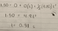 You flick a ball from a tabletop, so that the ball lands on the floor 1.50 m below. The ball's initial speed is 2.10 m/s. Use g = 9.80 m/s2.