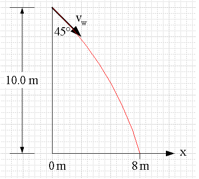 A fly ball just clears a 10.0 meter fence on the way down at a 45 degree angle, and strikes the ground 8.0 meters beyond the fence. Calculate the speed of the ball when it left his bat (at ground level).