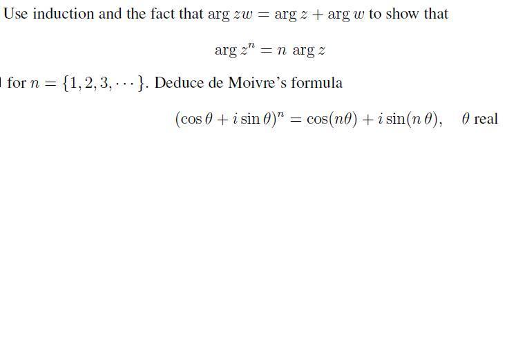 The forum discussion focuses on proving the complex number identity using the argument properties of complex numbers, specifically the identity arg(zw) = arg(z) + arg(w). The main goal is to demonstrate that arg(z^n) = n * arg(z) through mathematical induction. The discussion emphasizes the importance of establishing the base case for z^1 and then proving the inductive step for n = k, leading to n = k + 1. The second part of the question builds on this proof, utilizing the established relationship.