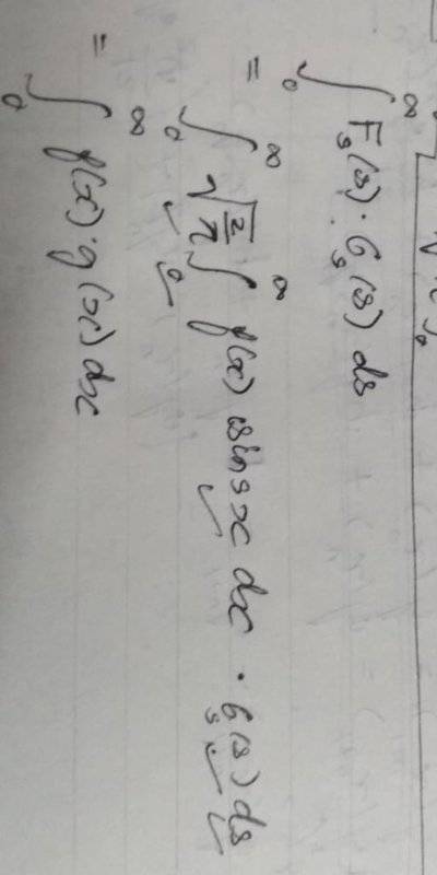 2/π [integration 0 to ∞] Fs(s)•Gs(s) ds = [integration 0 to ∞] f(x)•g(x) dx