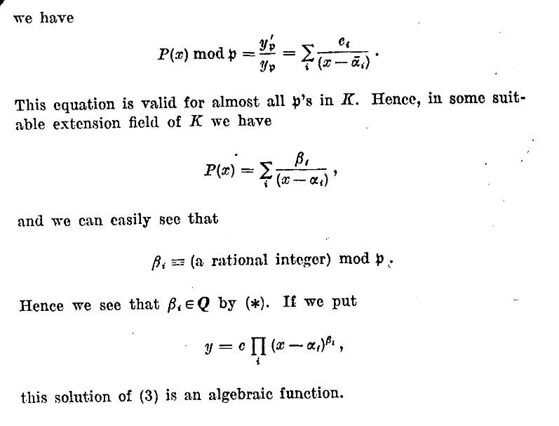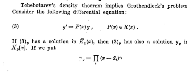 Why does the sentence: "If $(3)_{\mathfrak{p}}$ has a solution in $\overline{K}_{\mathfrak{p}}(x)$, then $(3)_{\mathfrak{p}}$ has also a solution $y_{\mathfrak{p}}$ in $\overline{K}_{\mathfrak{p}}[x]$." stand? (Wondering)
