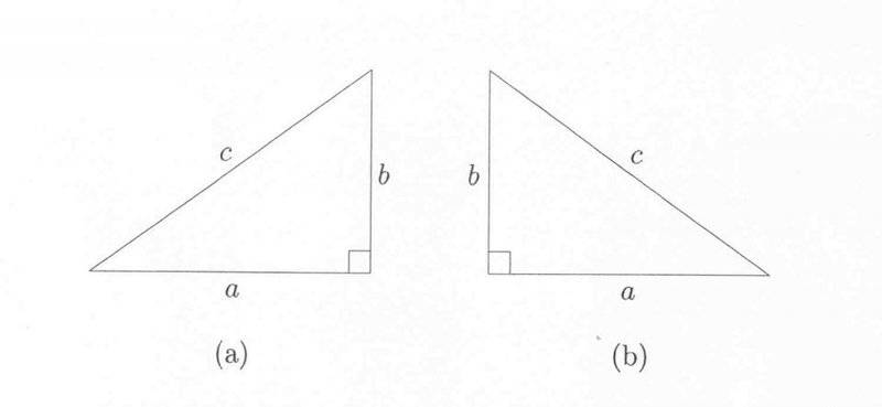 Say the hypotenuse is of length ##c## and the other two sides are of length ##a## and ##b##. First of all, we obviously have: