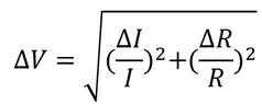 I believe the error I measure for the voltage across the resistor should be (since V=IR depends on its quantities through multiplication) from the current and resistance: