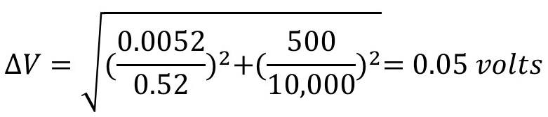 Putting these values in, the measured error on my voltage would be, as derived from the values of the resistance and current: