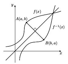 a) Show that the line that passes through the points (a, b) and (b, a) intersect the line y = x at a right angle.