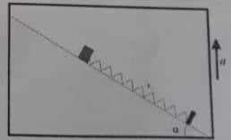 - A body of mass ##10 kg## is connected to a spring of constant ##490 \frac{N}{m}## and it lies on an frictionless inclined plane. The angle formed by the plane and the floor is ##30°##. This block is inside a room which accelerates upwards with ##a=5 \frac{m}{s^2}##. Prove that if the mass is moved away from its equilibrium point, it will experience simple harmonic motion