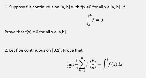 - One participant asserts that if a function \( f(x) > 0 \) for all \( x \in [a,b] \), then the integral \( \int_a^b f > 0 \), and proposes a correct statement regarding the conditions under which \( \int_a^b f = 0 \).
