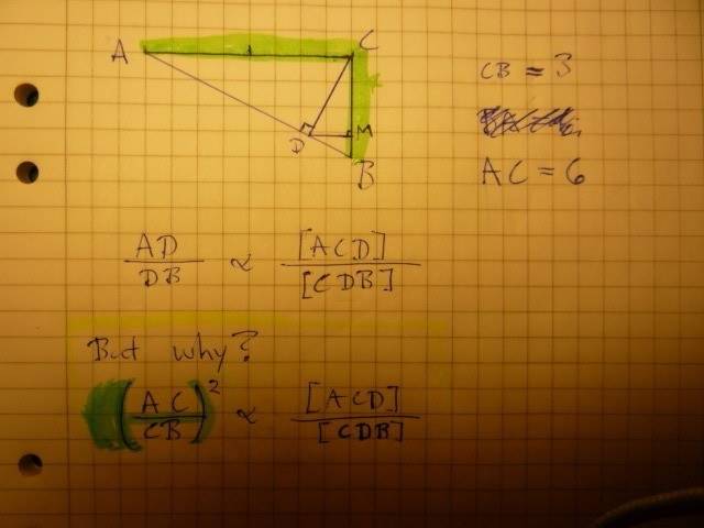 \frac{[ACD]}_{[CDB]} is proportional to \frac{AC^2}_{CB^2}