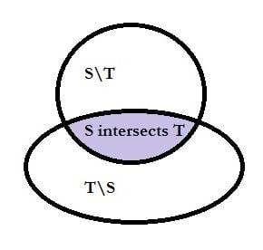 (1) We do not consider the cases of $S \subseteq T$, $T \subseteq S$ or $S \cap T = \emptyset$ since they lead to trivial solutions. We consider only the case where $S \cap T \ne \emptyset$. See the Venn diagram above.