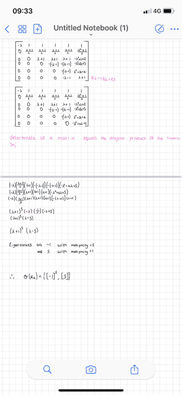 - Participants discuss the adjacency matrix for K6 and its relation to the all ones matrix J. There are inquiries about computing the spectrum of J and the implications of the trace in this context. Some participants express uncertainty about the direction of their solutions and the relevance of spectral information in their calculations.