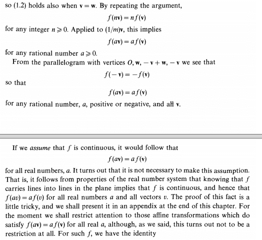 [tex]f(a\bar{v}) = f(\sum\bar{v})\text{(Sum it $a$ times)}[/tex].
