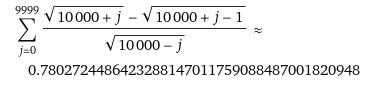 This is the equation I came up with and I wanted to prove it: $$\lim_{n \rightarrow+ \infty} { \sum_{i=1}^n \frac 1 {\sqrt{i(2n-i-1)} +\sqrt{i(2n-i)}}}=\frac \pi 4$$