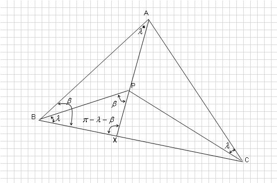 $\dfrac{\sin \lambda}{\sin \beta}=\dfrac{XB}{XA}$