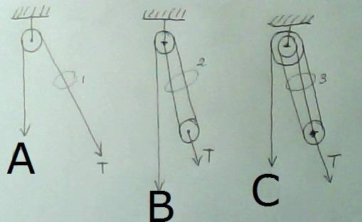 I want to design a pulley system like in the schematic below, a system where the distance between certain attachment points are equally spaced along a vertical bar. The main feature of these pulleys is that when a force (F) is applied on one end of the cable, the attachment points (A, B, C) move upwards and the distance between them closes and stays the same between point A and B but also between B and C, much like the crossing joints of a scissor mechanism.