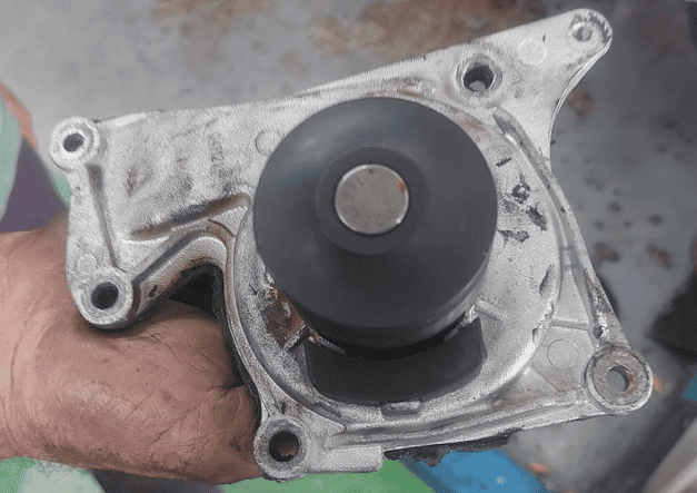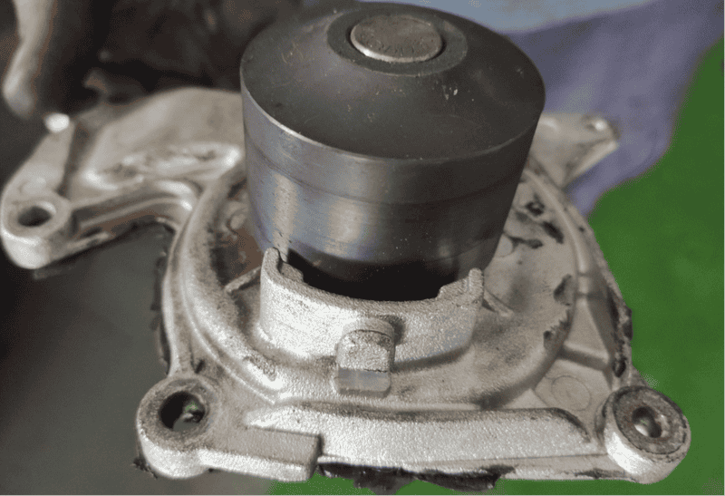 I would like to know the purpose of the rubber in this water pump and a metal piece behind it in this water pump of a vehicle. The water pump is located in the engine near the distribution belt. Best Regards