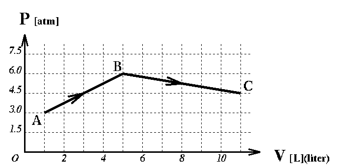 Look at the PV diagram of a system above. (attached) The units for P and V are atmospheric pressure atm and liter L. Process A to B and B to C are straight lines on it.