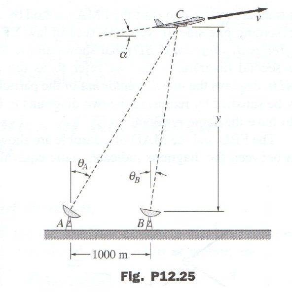 The problem involves a plane being tracked by two radar stations, with angles of elevation provided. The objective is to determine the altitude, speed, and climb angle of the plane based on the radar readings and their rates of change.