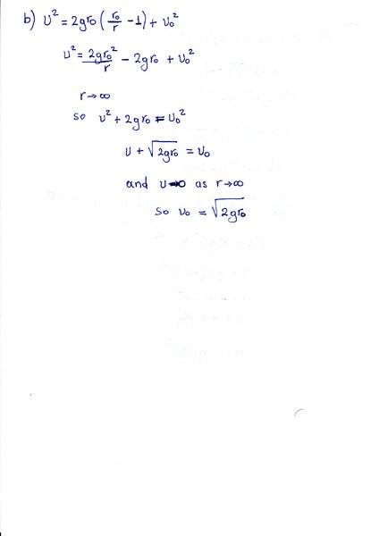 c)Using the result of part (b) calculate the escape velocity for earth, where g = 9.81m/s2 and