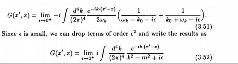 ## \frac{1}{k_{v}k^{v} + m^{2} - i\epsilon}##, [2]
