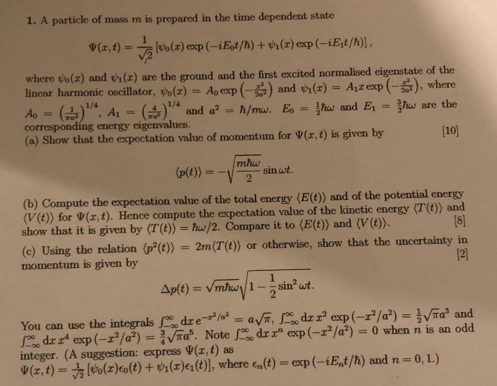 Hello, I have attached a picture of the full question, but I am stuck on part b). I have found the expectation value of the <momentum> and the <total energy> However I am struggling with finding the expectation value of the potential energy. I’m not too sure what the operator would be.