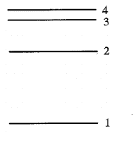 1. A certain type of atom has only four energy levels, as shown in the diagram. The "spectral lines" produces by this element are all visible, except for one infrared line. The quantum jump that produces the infrared line is:
