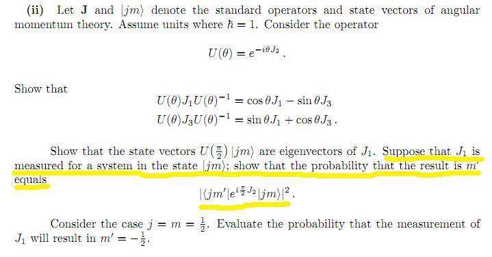 I'm not sure if it's really trivial or more involved. Do I have to use the fact that U(pi/2)|j m> are eigenvectors of J1 with eigenvalue m somehow? Why is the answer not just: