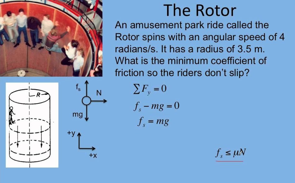 - Conversely, if the rotor slows down, the normal force decreases, which may lead to a situation where the actual static friction force equals the maximum, potentially causing the person to slip downward.