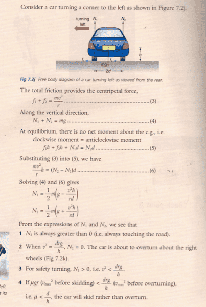 Participants note the complexity introduced by the car's suspension and the need to consider forces acting at ground level. The discussion also touches on the critical speed at which the car may be in danger of overturning, emphasizing the importance of understanding the forces and torques involved in circular motion.