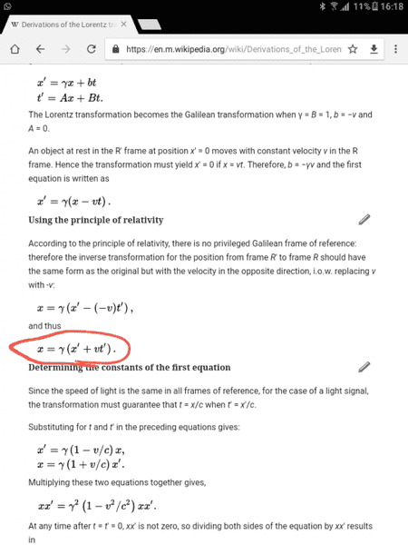 The discussion centers on the derivation of the Lorentz transformation, specifically addressing the use of t' instead of t in the equations. It clarifies that when the origin of the primed coordinate system moves at speed v relative to the unprimed system, the reverse holds true for the unprimed system, which moves at speed -v relative to the primed system. This symmetry is crucial, as it establishes that the transformation equations must be consistent regardless of the observer's frame of reference.