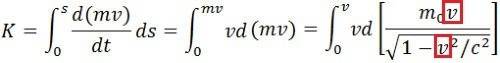 $$\int_{0}^{v} \frac{m_0}{\sqrt{1 - \frac{v^2}{c^2}}} \cdot v_{final} \cdot \frac{1}{2} \cdot dv_{final}$$