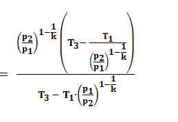 &= 1 - \left( \frac{p_2}{p_1} \right)^{-\left(1 - \frac{1}{k} \right)} \frac{T_3 - T_1 \left( \frac{p_2}{p_1} \right)^{\left(1 - \frac{1}{k} \right)}}{T_3 - T_1 \left( \frac{p_2}{p_1} \right)^{\left(1 - \frac{1}{k} \right)}}