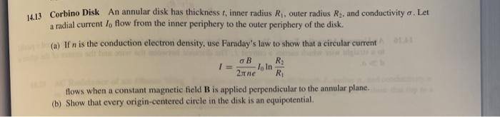 An annular disk consists of a sample of material with thickness d, inner radius ##\displaystyle R_{1}##, outer radius ##\displaystyle \ R_{2}##, and electrical conductivity ##\displaystyle \sigma##. Let the radial current ##I_0## flow from the inner periphery to the outer periphery of the disk.