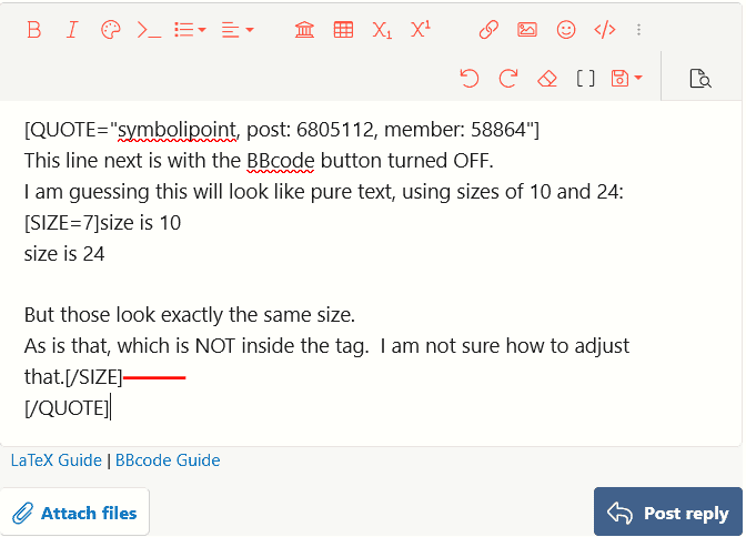 I find no more a tool for controlling text size in our posts, but while in this Feedback and Announcements board, I do see a tool. Hope one could simple write-in the text for the tags and that would work (in the other boards).