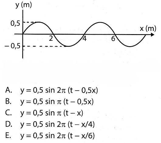 y = -0,5 sin (πt - 0,5πx)