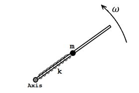 $$M \ddot r = - {\cal L}^2/M r^3 - 4 \pi^2 k (r - R) = - M r \omega^2 - 4 \pi^2 k (r - R)$$