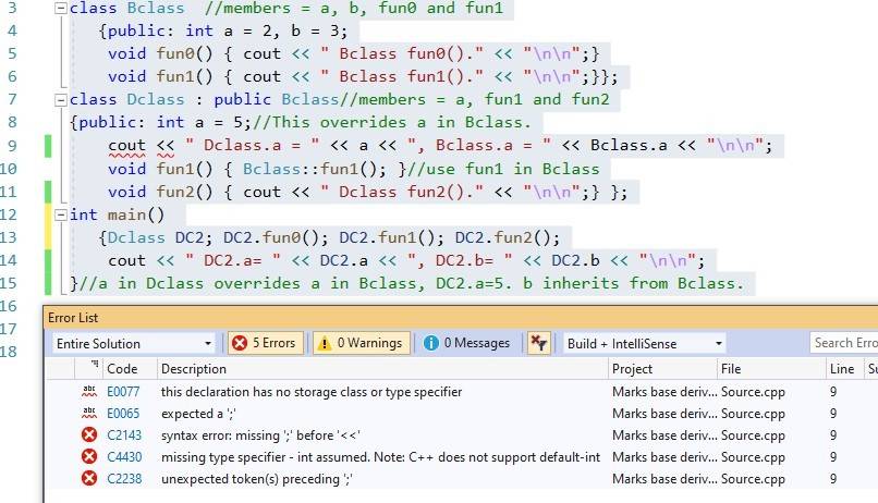 DerivedClass2(int b, int c) : BaseClass2(a, b) { }//How many b do we have?