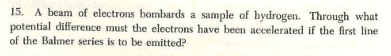 - Describe Frank-Hertz experiment. What is the significance of the minimum voltage? If this experiment is performed with hydrogen gas and electrons of energy 4 eV are used, which observed spectral series is emitted?