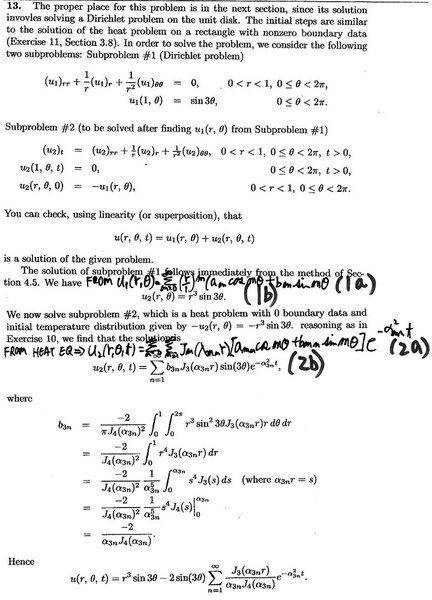 u_{1}(r,\theta,0)=\sum_{m=0}^{\infty}\sum_{n=1}^{\infty}J_{m}(\lambda_{mn}r)[a_{mn}\cos (m\theta)+b_{mn}\sin (m\theta)]I don't agree with the first part, you cannot assume \frac{\partial u}{\partial t}=0. Please explain to me.