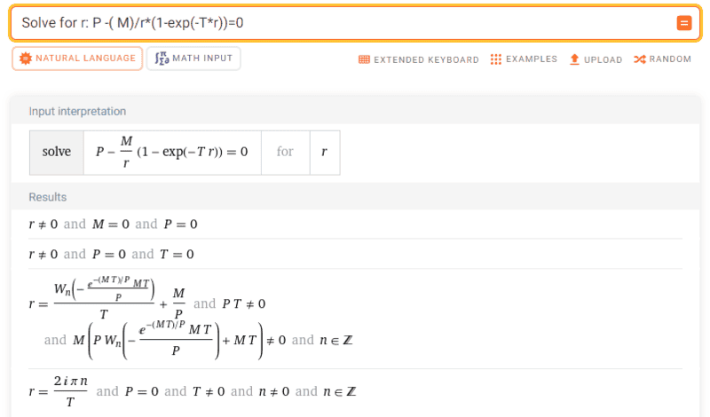 - One participant suggests that ##W_0## is applicable under certain conditions related to the argument of the function, specifically when $$\frac{-MT}{P} \times e^{\frac{-MT}{P}} \geq -e^{-1}$$.