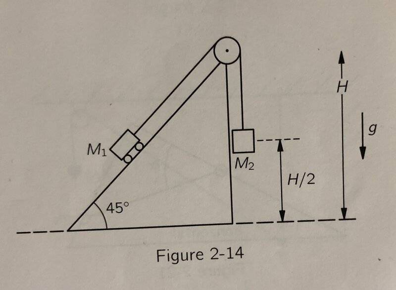 - There is a mass-pulley system as shown in the attachment. I am asked to find the acceleration of M2 with M2 > M1.