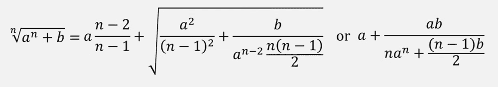 Halley gives these two sets of equations for finding nth roots which we can generalize coming up with one irrational and one rational form.