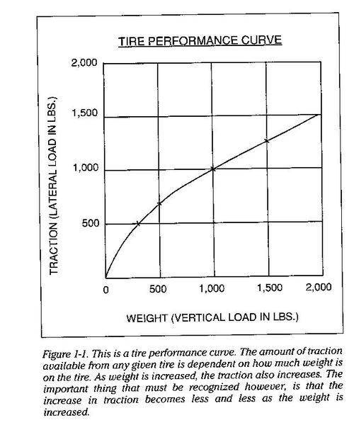 Tire traction- realize the more load placed on a tire, the more traction ..but...the tires coefficient of friction decrease. However, up to the design limit of the tire, its traction capacity ( ability to actually transmit force to the road) as opposed to dimensionless coefficient of friction, increases with vertical load.