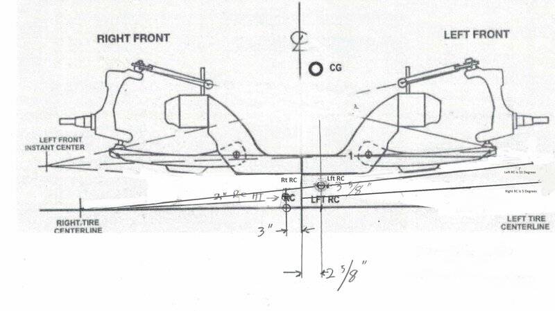 That helps RM . I’m taking a short course trig for dummies . Another question I have .,How much travel should we be getting? And if we travel the car to far how badly does interrup the roll center and its ability to plant the Right front tire.How far off the ground should the cross member be when at full travel ?Ranger Mike said:Regarding Roll Center acting on right front tire contact patch.